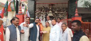 बिहार में एनडीए की प्रचंड जीत पर भाजपा कार्यकर्ताओं में उल्लास, बौरहवा बाबा मंदिर में दर्शन के बाद बाटी मिठाइयां